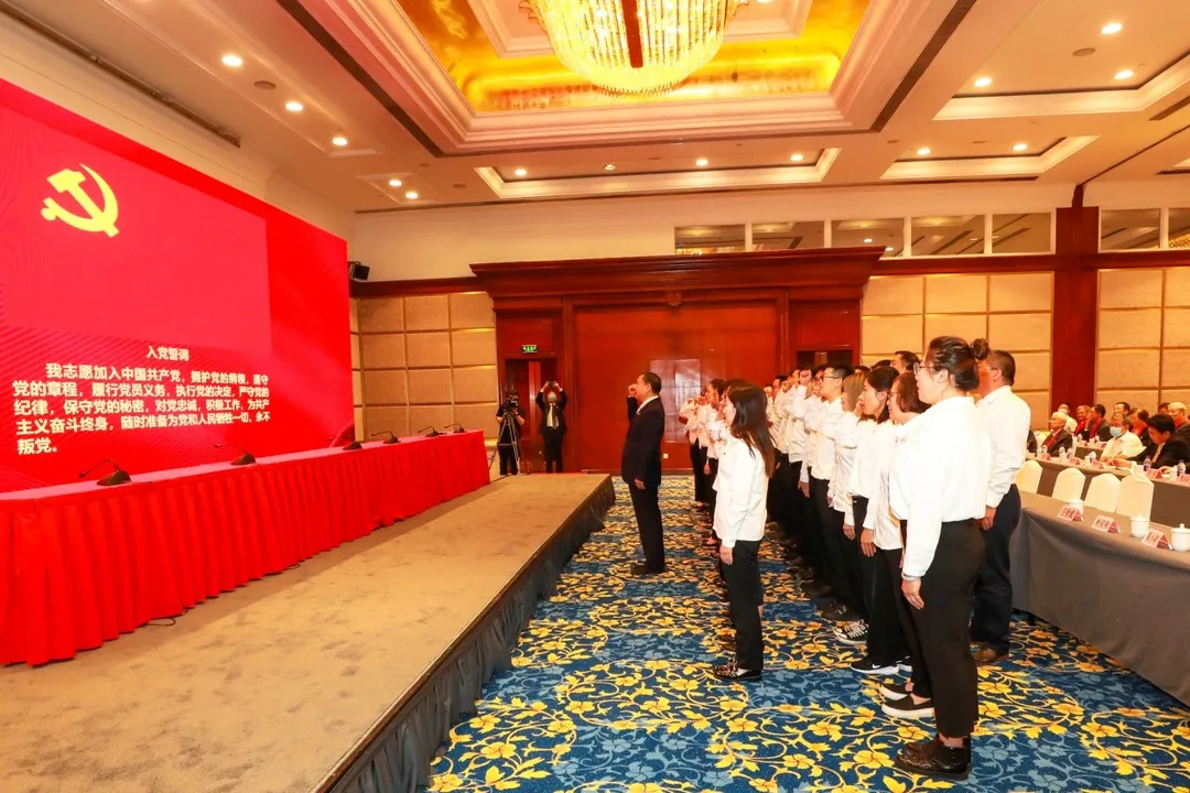 会上,38名新党员在党委副书记徐祥楠领誓下,面向党旗庄严宣誓,表达对党的赤诚忠心。