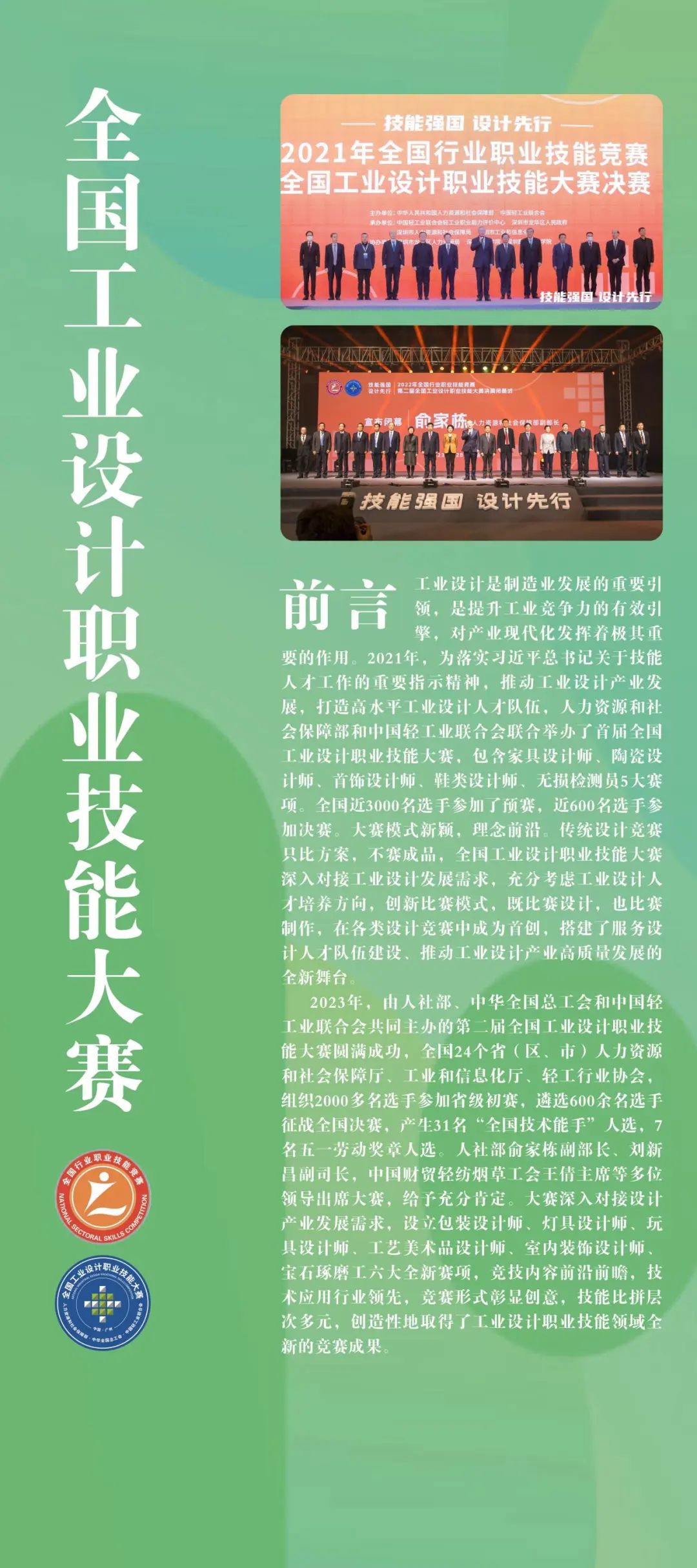 六是取得了人才培养的新成就。中国轻工联积极开展工艺美术相关职业技能培训、评价、竞赛工作,积极推动技能人才队伍建设。五年来,依托评价总站、直属基地培训评价工艺美术技能人才5万余人;直接举办培训班20余次,培训1000余人。举办包含陶瓷设计、首饰设计、工艺美术品设计、宝石琢磨等4个职业的全国工业设计国家一类大赛,举办包含工艺品雕刻工、陶瓷装饰工、景泰蓝制作工等职业的8个国家二类竞赛和行业赛,参赛选手6000余人,为行业选拔培养出一大批工艺美术高技能人才。