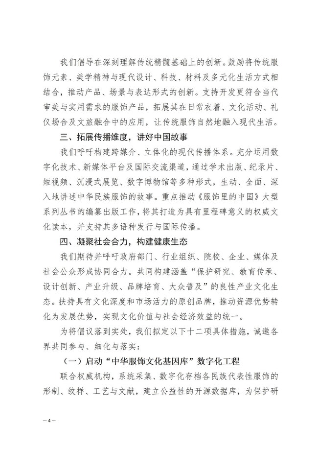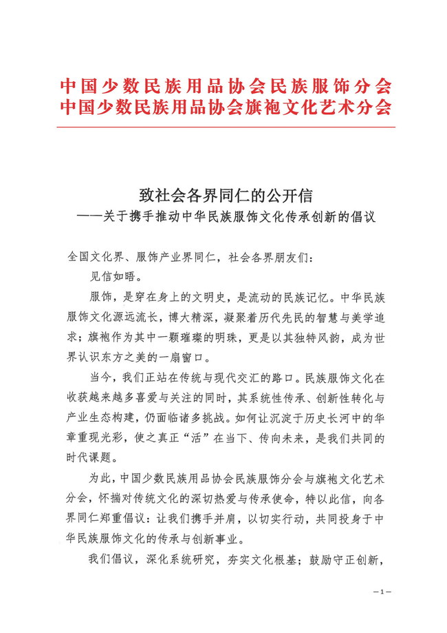 关于携手推动中华民族服饰文化传承创新的倡议