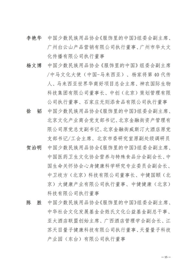 中国少数民族用品协会专家委员会专家...
