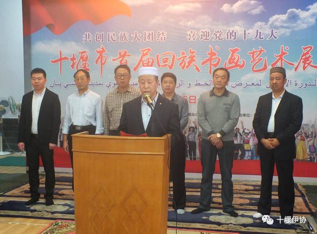翰墨飘香,丹青溢彩。9月26日上午,以“创建民族大团结 喜迎党的十九大”为主题的十堰市首届回族书画艺术展在十堰城区清真寺隆重开幕,来自本地及甘肃、 宁夏、青海、西安的回汉民族书画艺术家等一百余人参加了开幕式。市民宗局局长李文新出席开幕式致辞并讲话,市委统战部常务副部长董飞作了总结讲话。