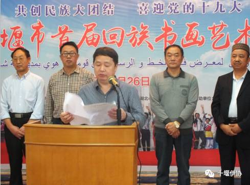 期间我会会长马文学作了“十堰市首届回族书画艺术展”筹备工作报告,秘书长马兵主持开幕式。