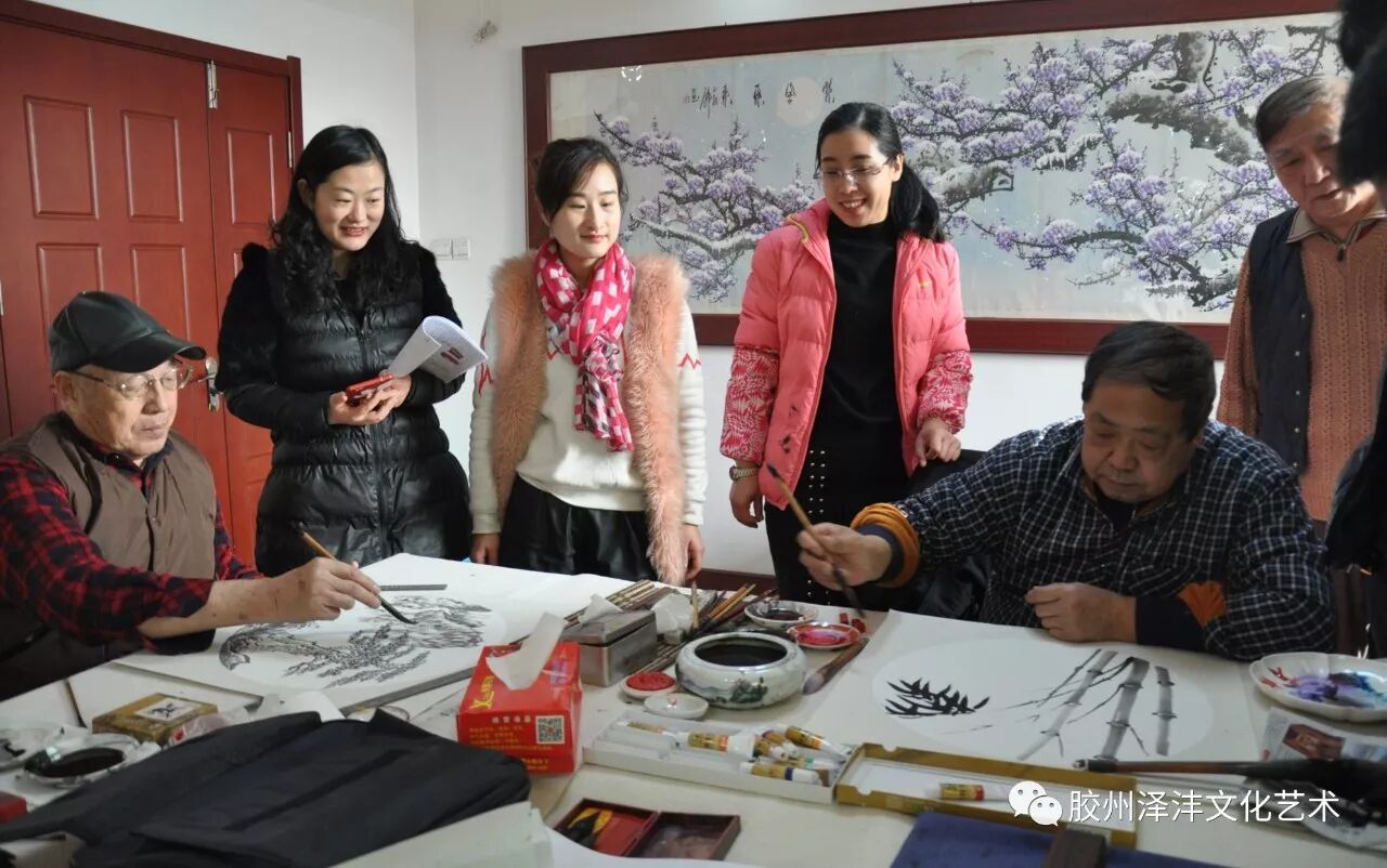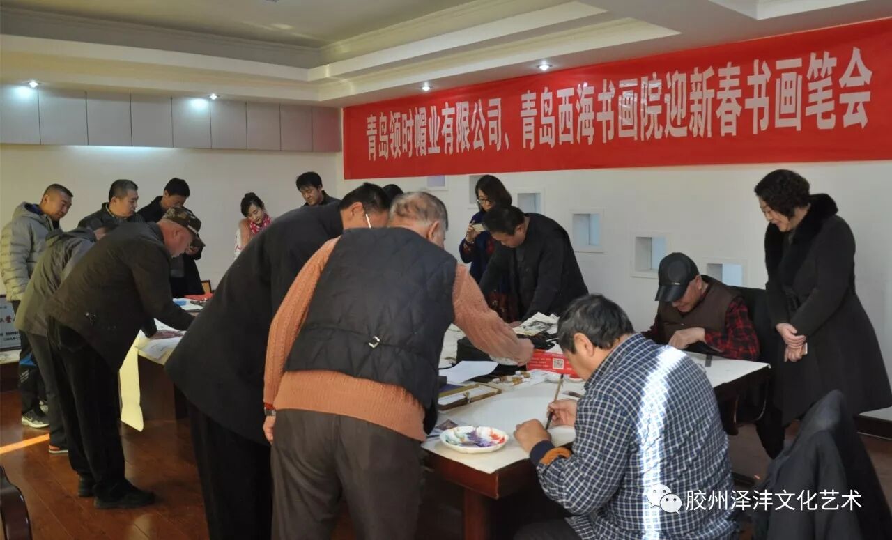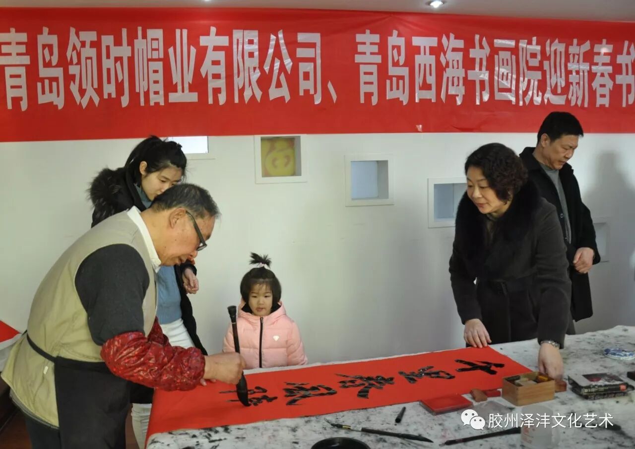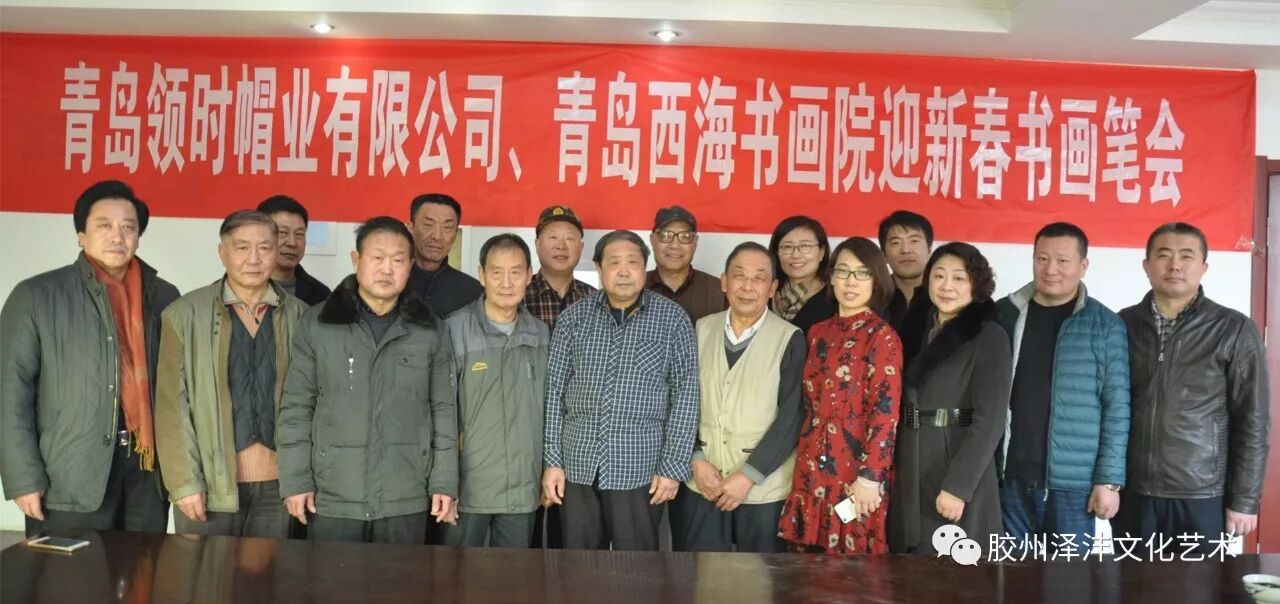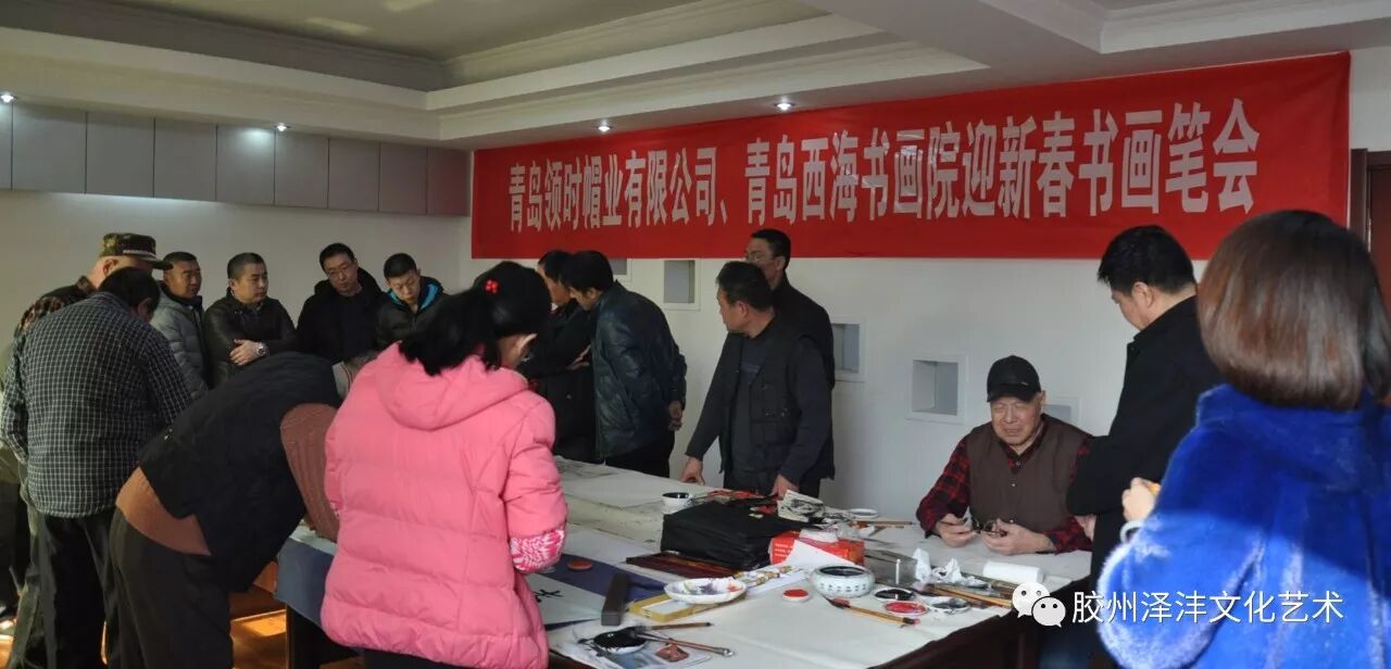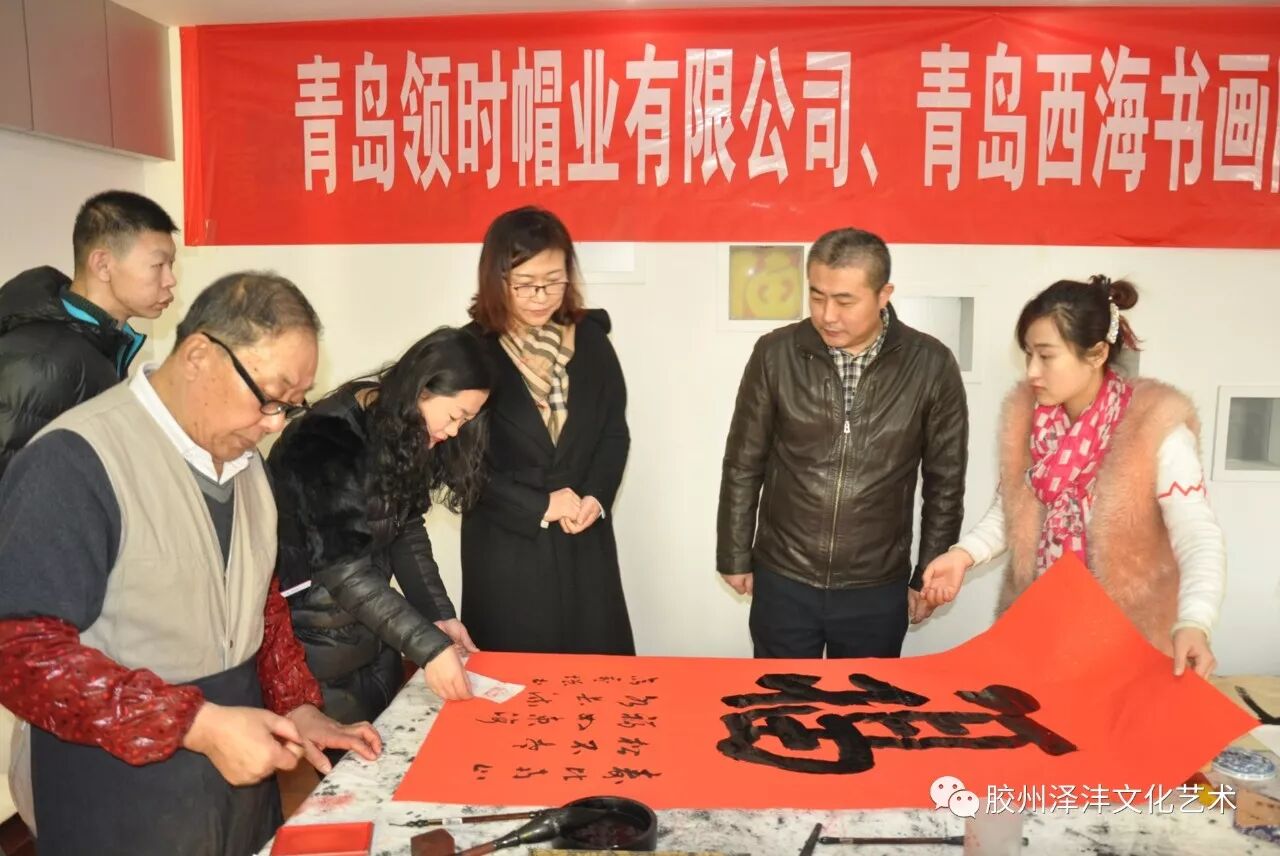 泽沣文化120日讯 2018年新春佳节即将来临,120日上午,由青岛西海书画院和青岛领时帽业有限公司共同主办的迎新春书画家走进企业书画笔会活动在领时帽业公司隆重举行,本次活动旨在活跃职工文化生活为目的,是新春佳节即将到来时艺术家和公司员工共同参与的一场文化盛宴。