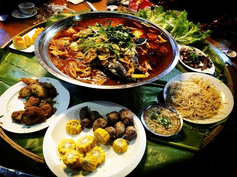 在极具特色的海盗船上遥望远方,品尝酸汤鱼、火焰鸡等特色美食。