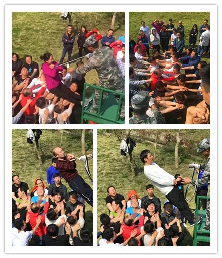 为提升团队凝聚力,加深各部门员工间的交流,金诃人在05兵工厂拓展基地进行了“穿越电网”、“信任背摔”、“毕业墙”三个挑战项目的拓展活动。在教官、党员同志的帮助和模范带头作用下,大家团结一致、齐心协力,一次又一次挑战自我,超越自我,顺利完成了挑战项目。其中,让人印象最为深刻的是“毕业墙”项目,也是令所有金诃人最为震撼的一个项目。挑战团队采用搭人梯的方式,让身强力壮的男同事做底座,其他同伴踩着他们的肩膀,一个个成功地翻越了高墙。成就的喜悦、感恩的心情充满了金诃人的内心,难以用语言来表达,是每个人的付出和协作,换来了团队的挑战成功,也让每个人都更加明白依靠团队力量才能获得更大的成功。