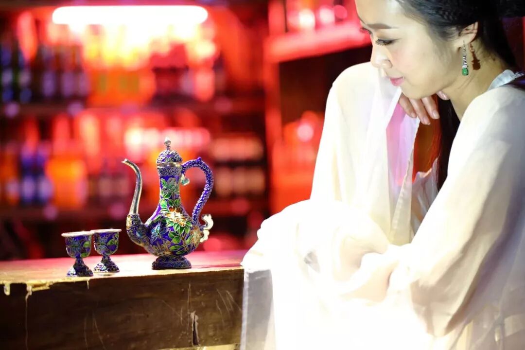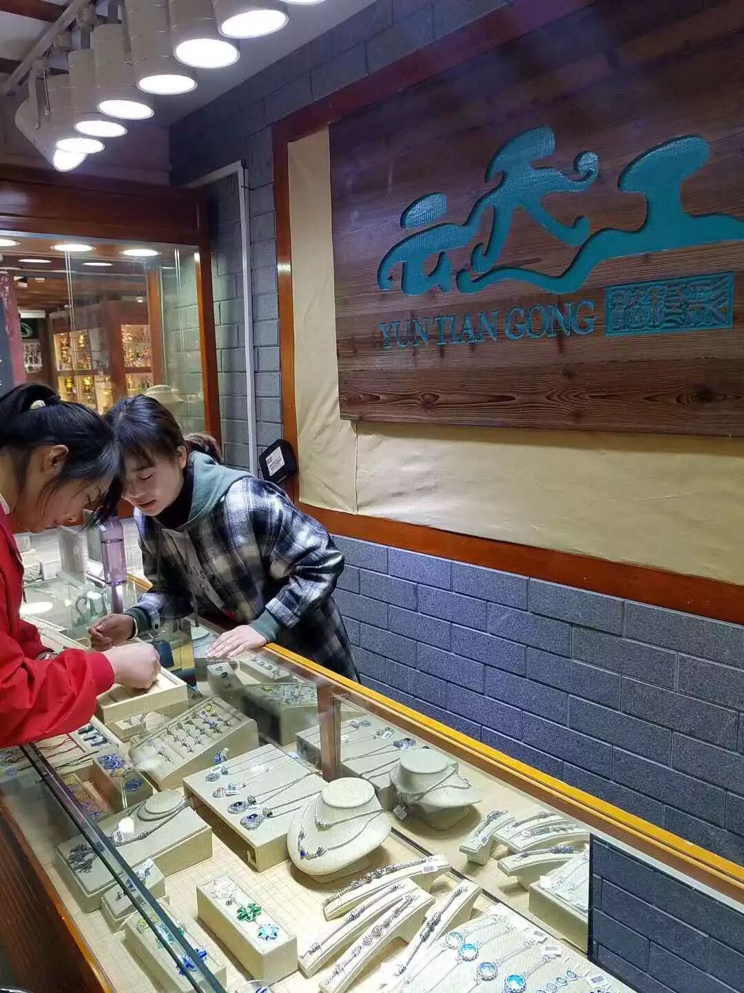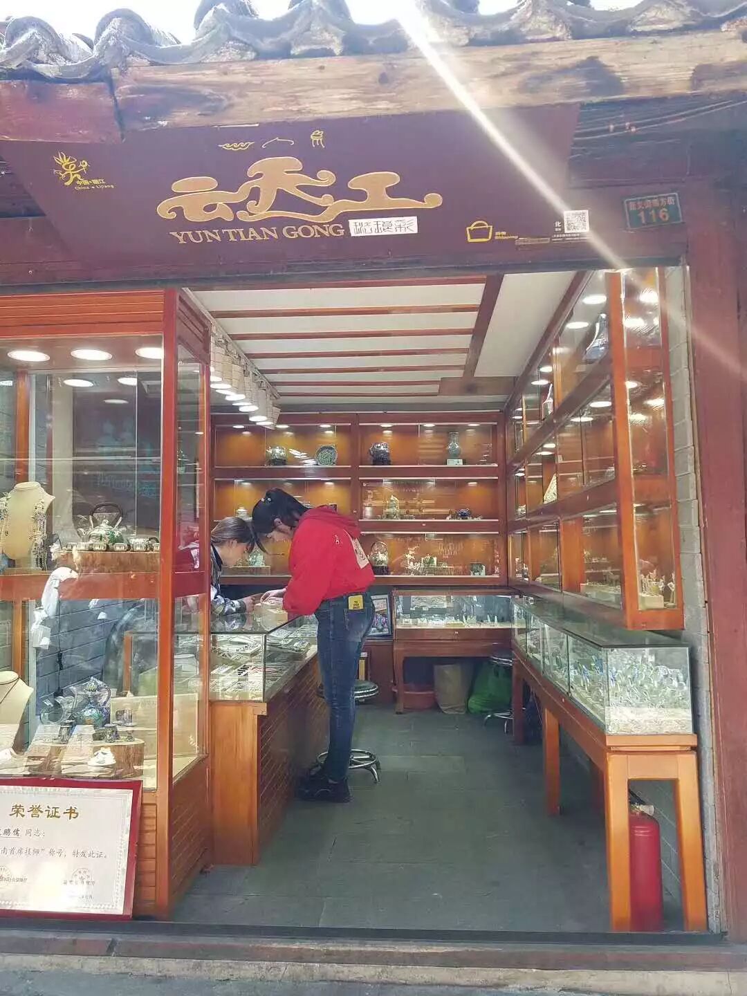 走进位于束河工匠街的“云天工”珐琅店(另外还有玉河走廊、古城两家分店,预计4月下旬开第四店),仿佛走进一个高贵典雅的国度,银器上那完美的镶嵌、别样的绘制、丰富的图案令你应接不暇。特别意味深长的是珐琅彩还绘制于碗筷等餐具上,别有一番韵味,巧妙的解释了“秀色可餐”的另一番道理。店里的工作人员说,珐琅银器在这里是主角,一副耳环、一枚戒指、一根发簪,都有珐琅彩作为点缀。