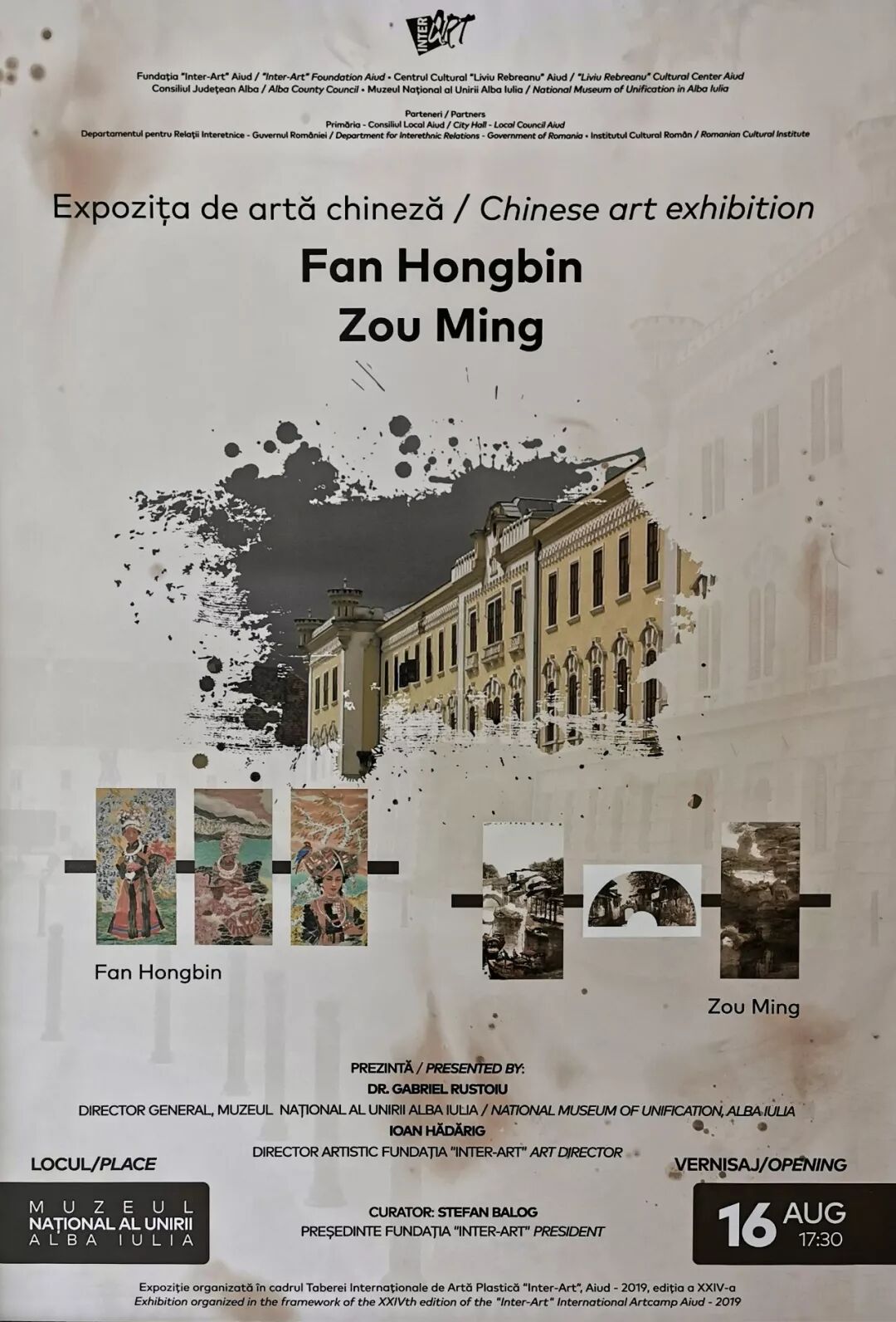 由罗马尼亚AIUD国际艺术基金会主办的”中国艺术家欧洲行——樊鸿宾/邹明中国画作品展”於当地时间8月16日下午5点在罗马尼亚阿尔巴尤利亚国家博物馆幵幕,展出两位画家水墨和彩墨画四十余件,展期一周。
