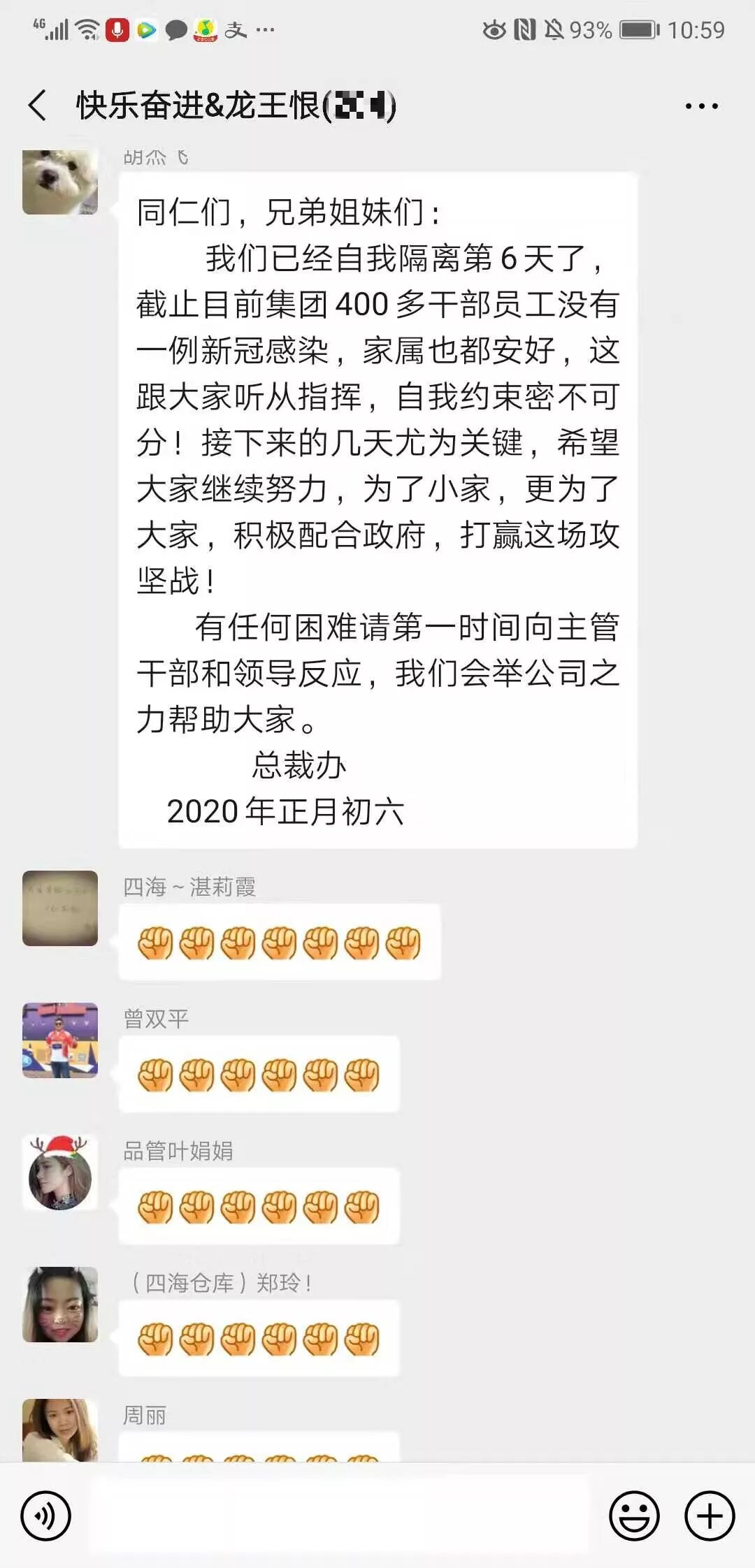 1 、疫情发生后,集团第一时间(1月23日)发布“致各位同事、朋友、合作伙伴们的一封信”。呼吁我们干部员工以身作则,履行企业、社会责任,不给政府和一线医护人员增添麻烦。