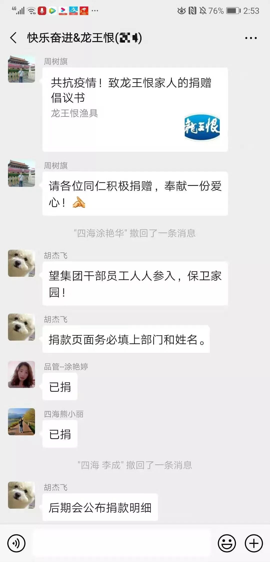 2 、疫情无情人有情。2月1日,集团工会互助与慈善基金会发出倡议书,号召全体龙王恨家人积极行动起来募捐,献出一份爱心,共击疫情,共度难关!集团干部员工及工会互助与慈善会募捐102020元。