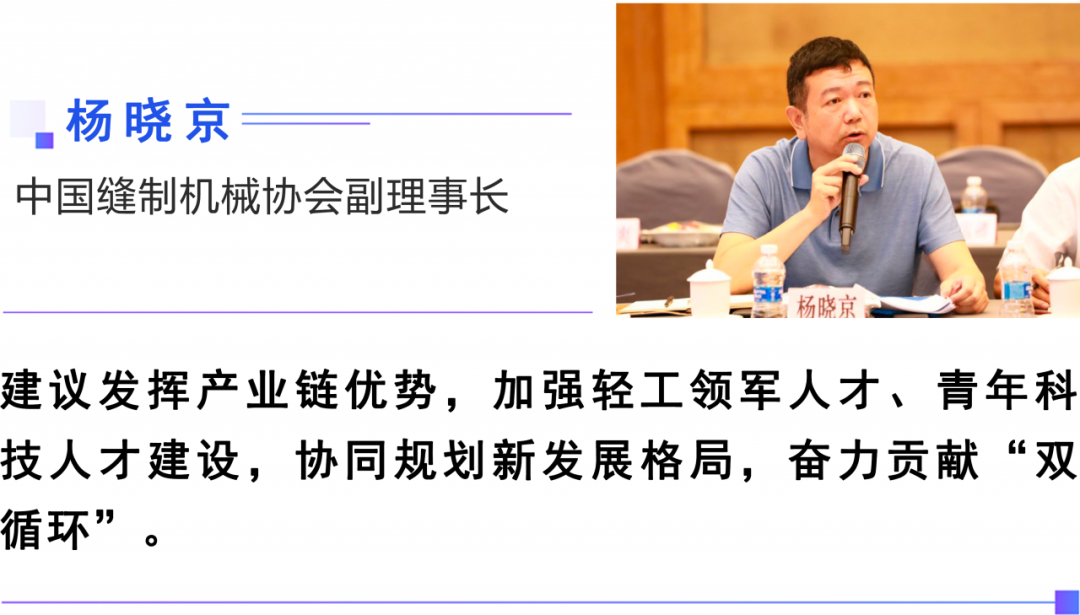 座谈会上,中国轻工联兼职副会长石维忱、赵亚利、齐庆中、姜风、王延才、石僧兰、梁梅、李玉中、刘素文,兼职副会长单位负责人宋书玉、于学军、张九魁、屠祺,中国缝制机械协会副理事长杨晓京等围绕打造世界级轻工行业产业集群、发挥中小企业就业优先功能、服务“大健康”产业、持续提升创新力影响力、强化轻工领军人才建设、加强科技攻关和短板创新、加大智能制造生产设备研发力度、完善绿色工厂评价标准等方面,就轻工业“十四五”规划提出意见和建议。